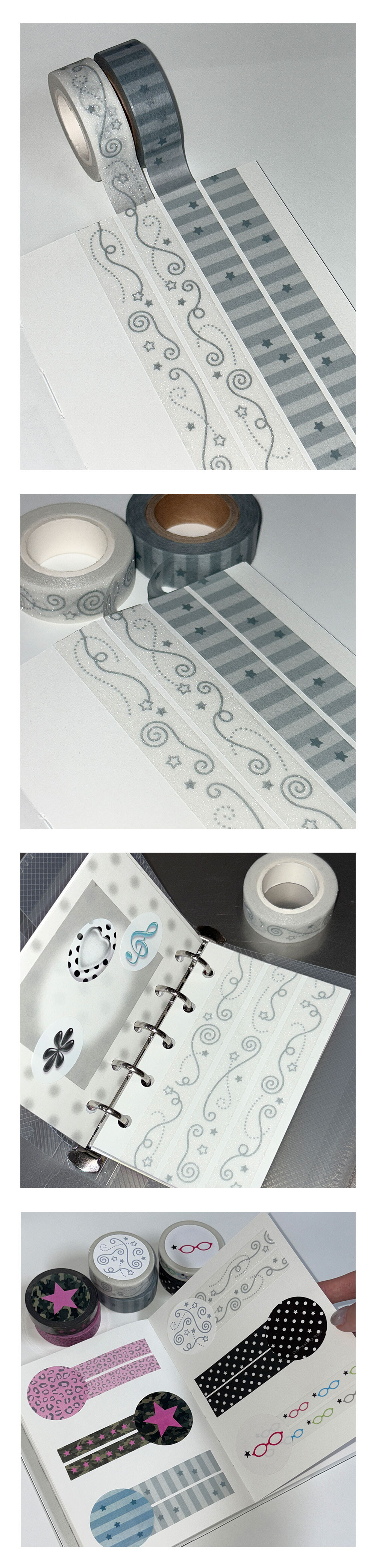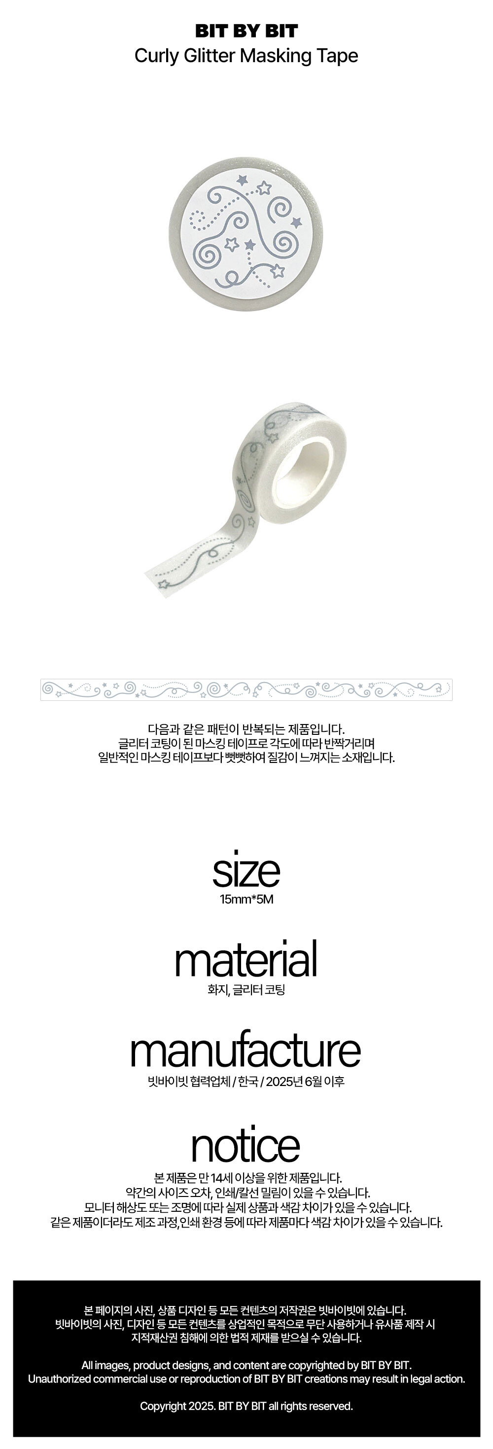 구불거리는 선들이 귀여운 느낌을 주는 글리터 마스킹 테이프 제품입니다.