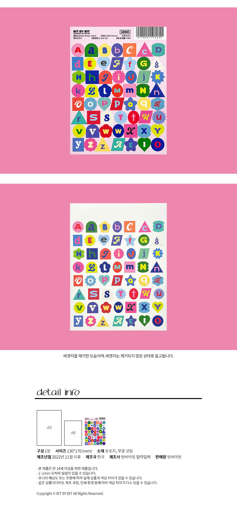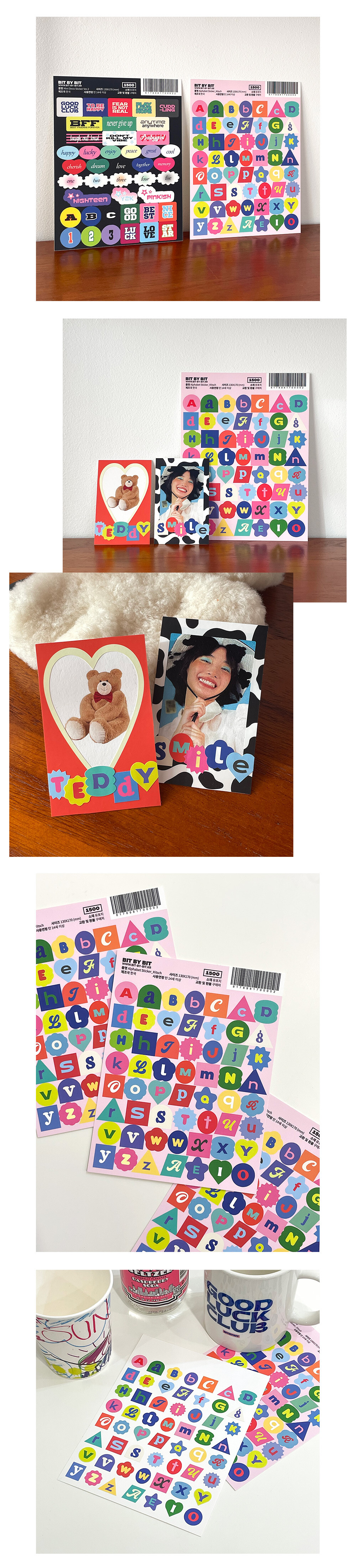 키치한 폰트, 컬러 그리고 모양을 이용한 알파벳 스티커입니다.
