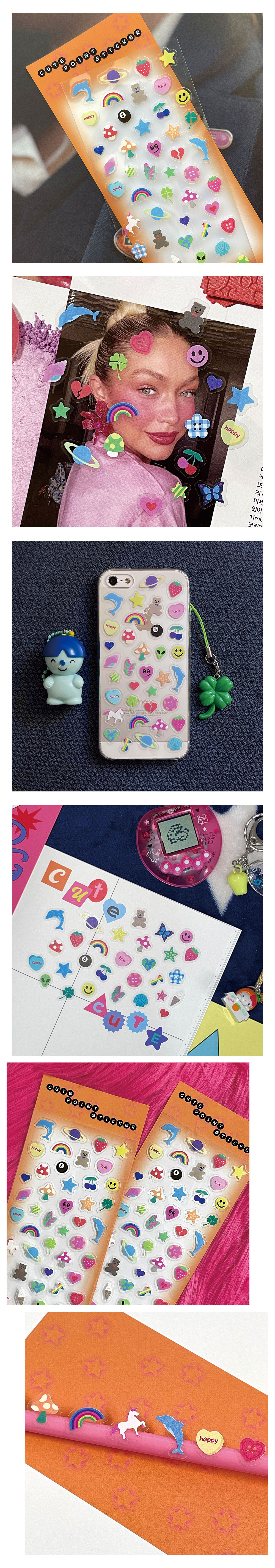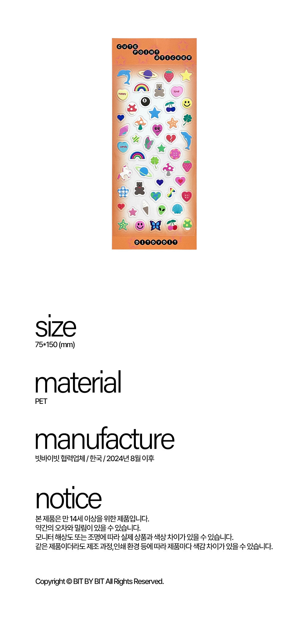 고전 문구 컨셉을 모티브로 한 키치한 디자인의 투명 스티커입니다.