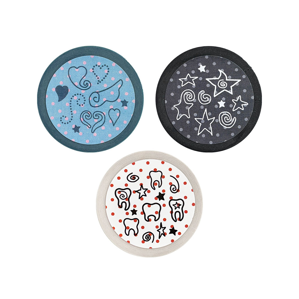 다양한 컬러감과 도트 패턴, 낙서같은 아이콘들을 활용한 마스킹 테이프입니다.