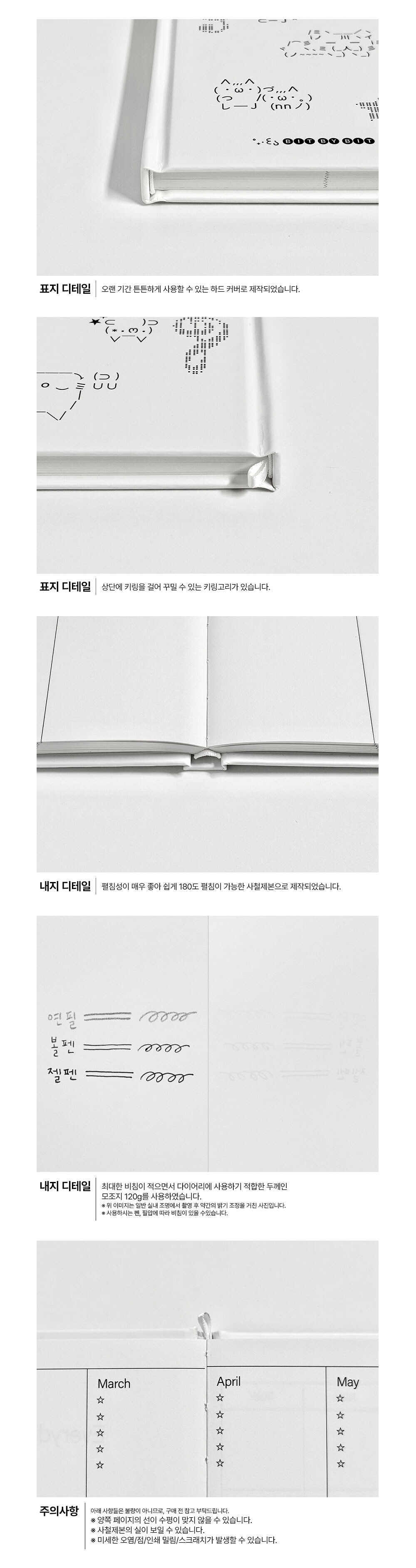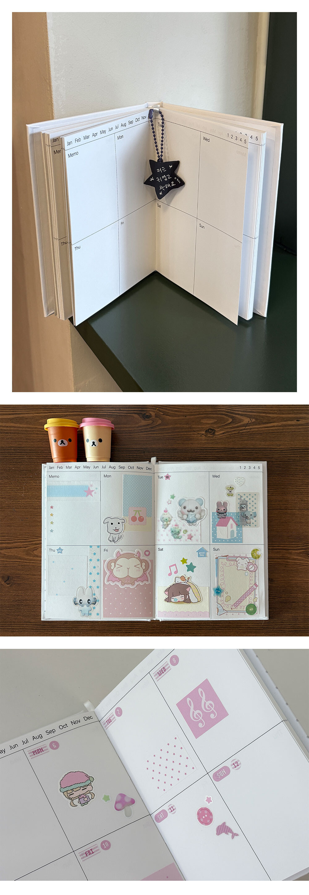 하드커버로 튼튼하게 사용할 수 있는 12개월 만년형 다이어리입니다.