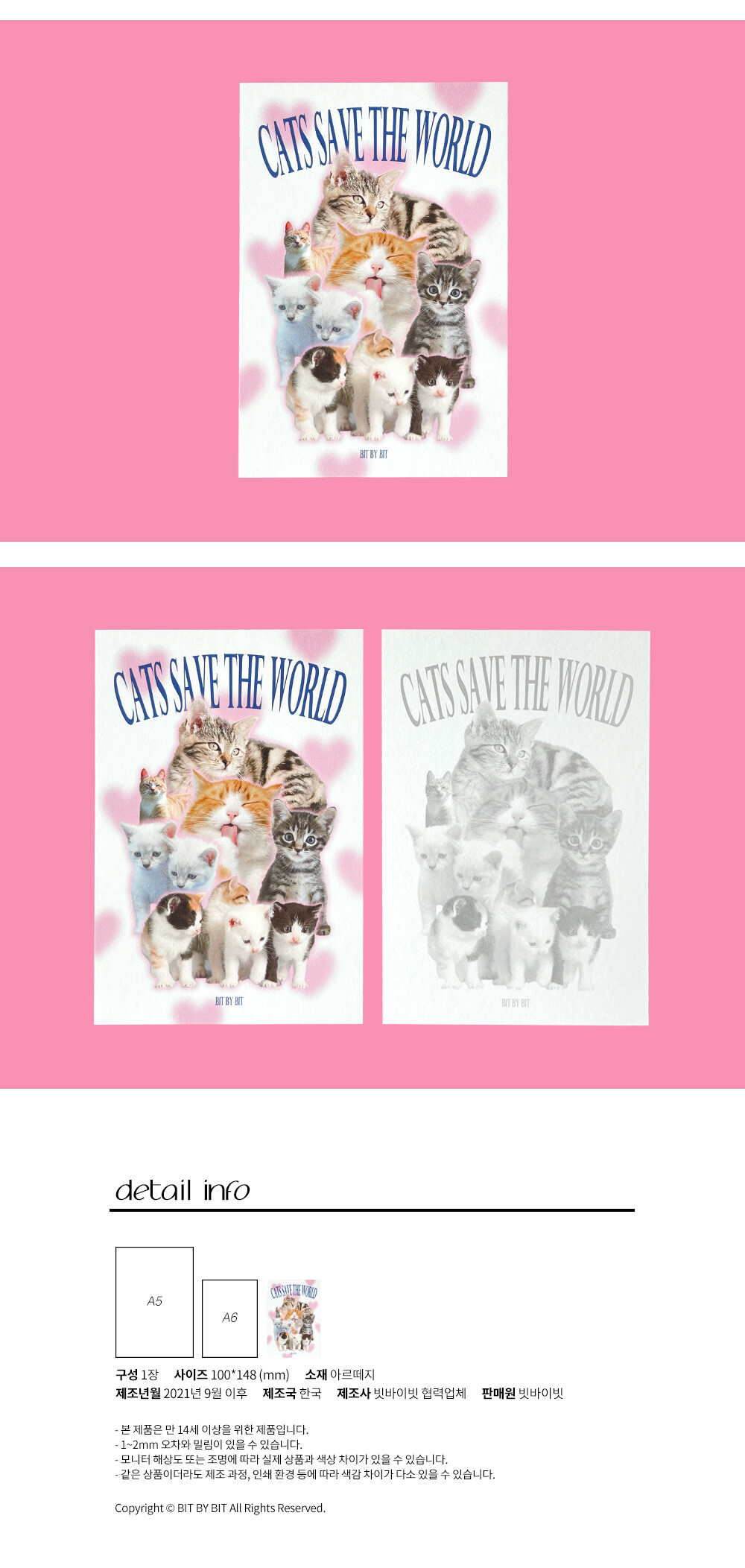 사랑스러운 색감과 귀여운 고양이로 가득 채워진 엽서 제품입니다.