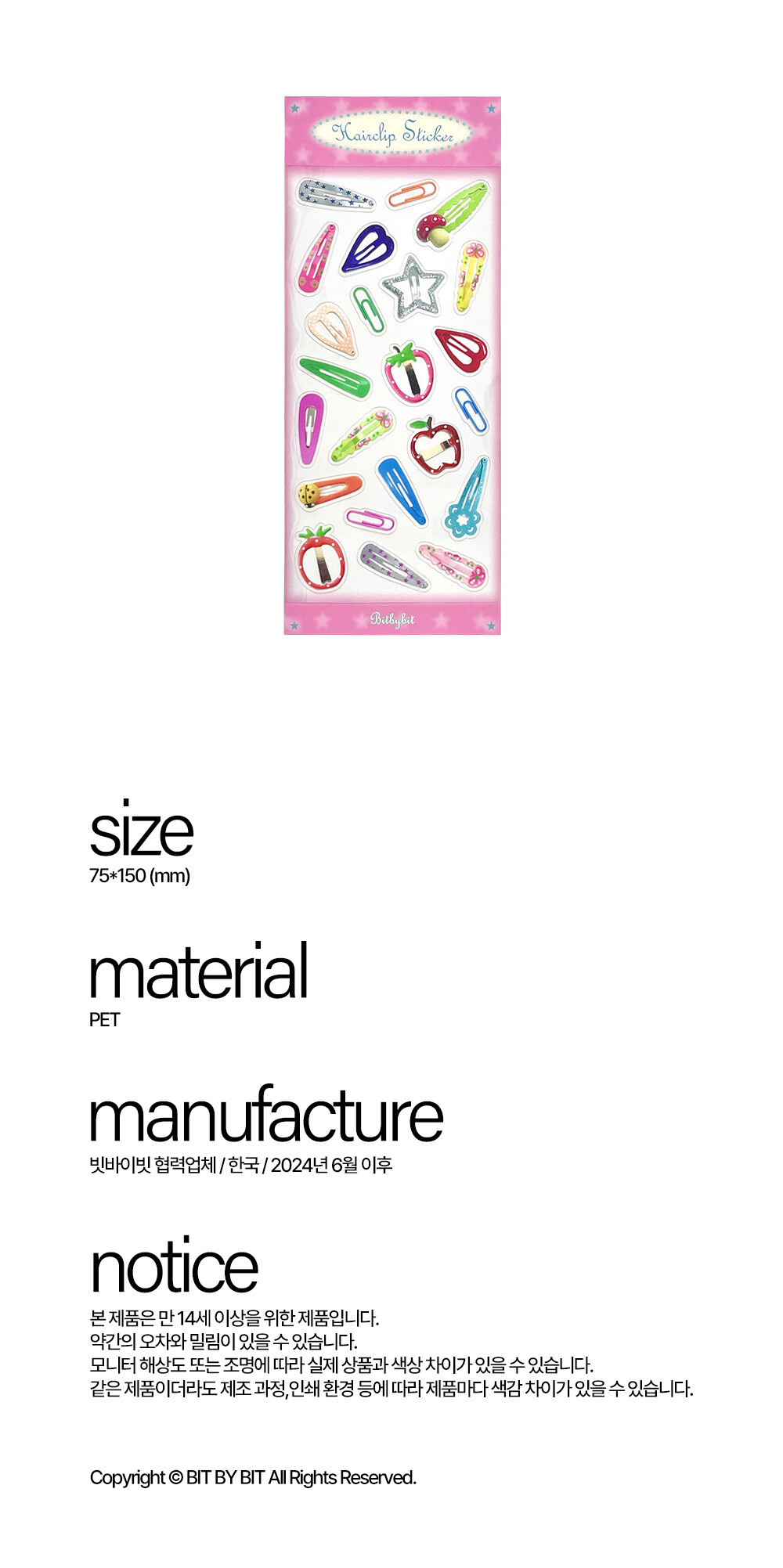 키치하고 귀여운 느낌의 헤어클립 스티커입니다.