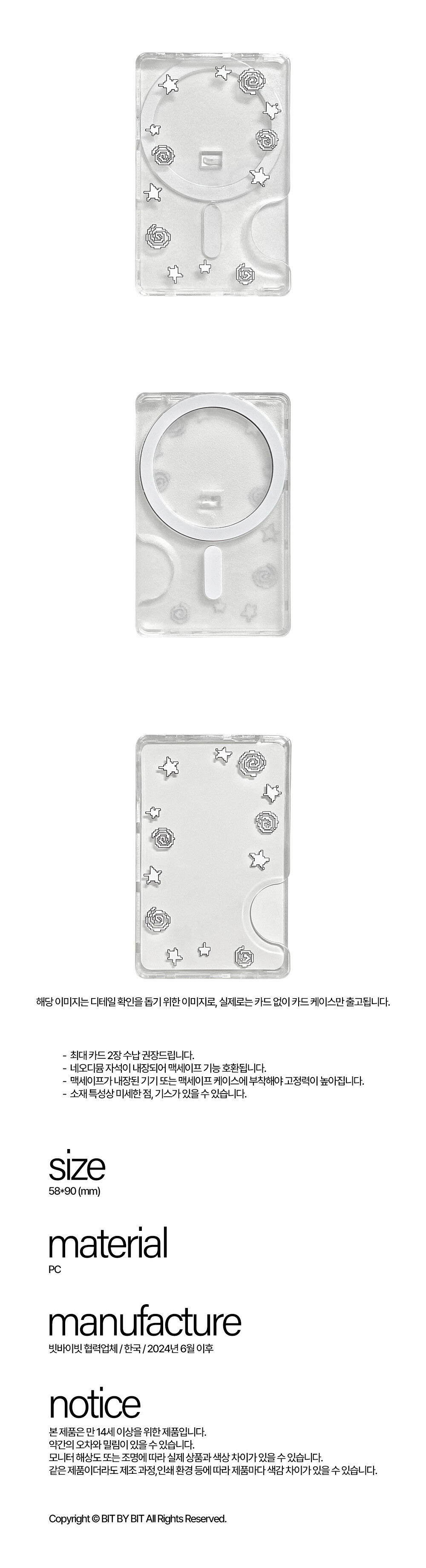 ※ 카드케이스 제품은 관리상의 문제로 1:1 주문 제작 형식으로 진행되며, 제작에 들어갔을 경우 단순 변심 및 착오로 인한 교환 및 환불이 불가합니다. 신중한 주문을 부탁드립니다.