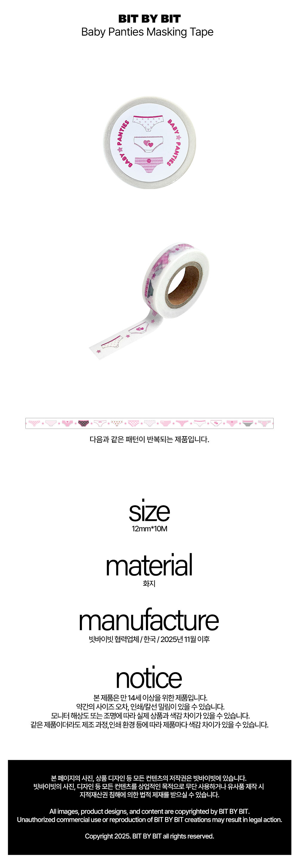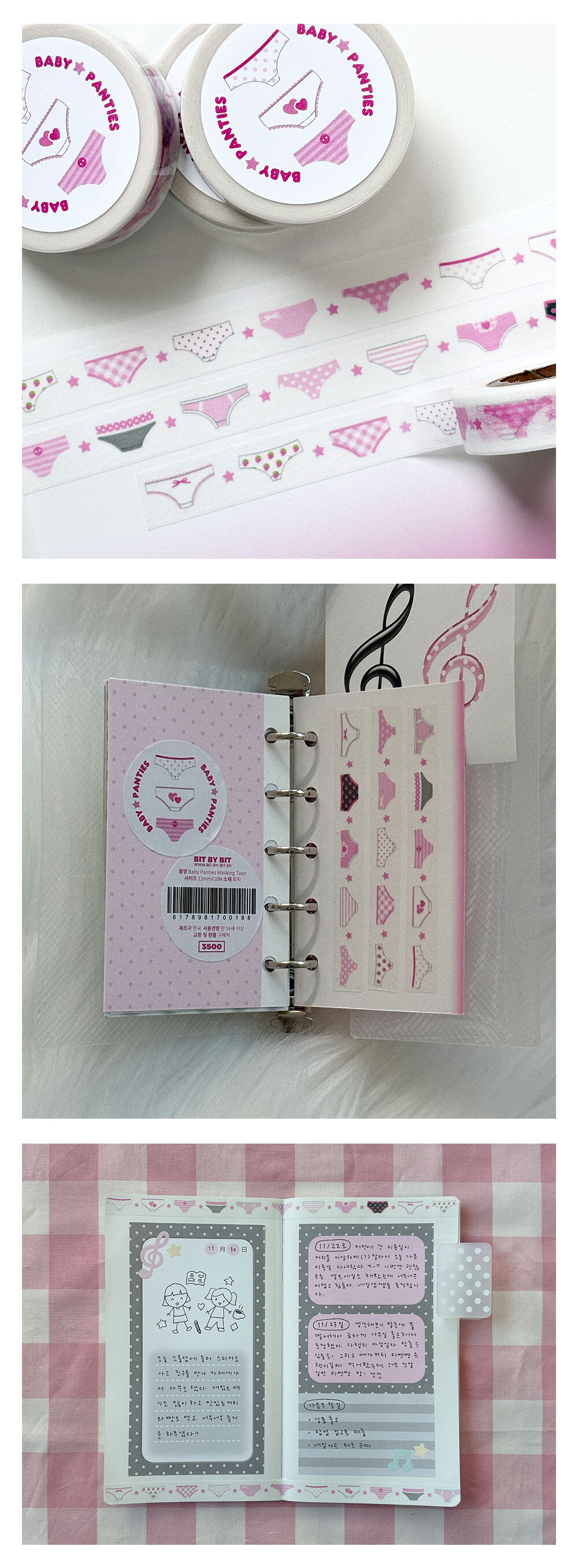 귀여운 아기 팬티 디자인의 마스킹 테이프입니다. 중간중간 별로 포인트를 주었습니다.