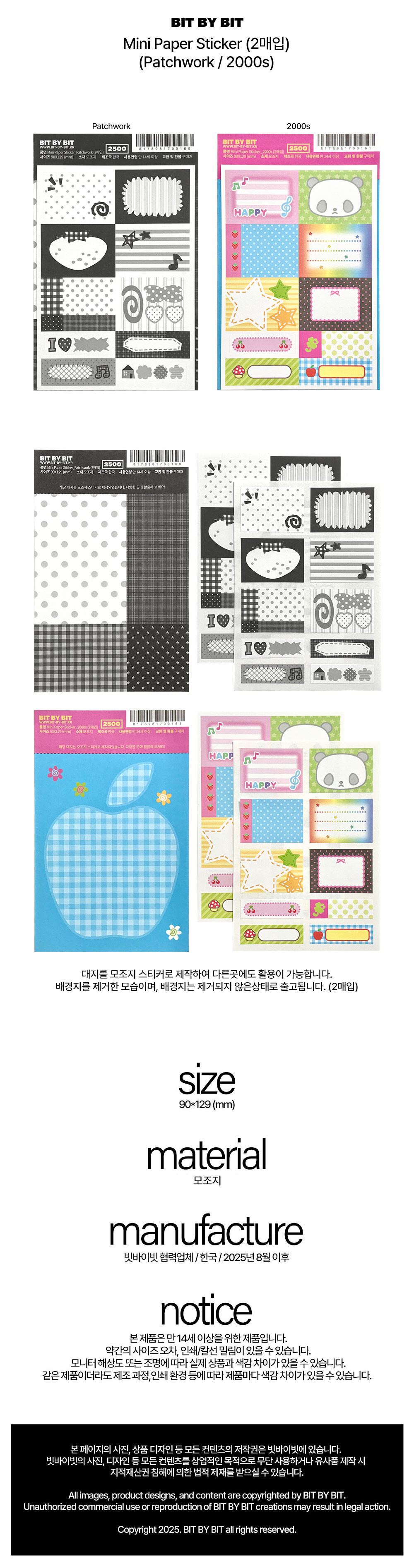 2매입이며, 모조지 소재로 스티커 위에 연필, 볼펜 등을 사용하실 수 있는 제품입니다.